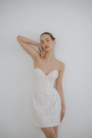 Our Reception Collection features a curated selection of bridal minis by Lis Simon (Hayley Paige coming soon). Designed for celebrating after the ceremony, these second dresses make a statement while keeping the party going. Each gown can be customized. Prices range from $1,100 - $1,600.